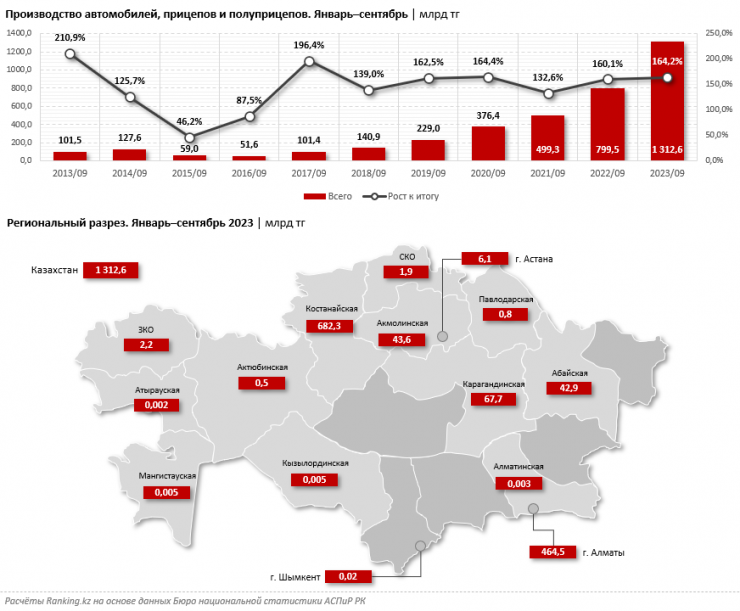 Сообщается, что более половины объема выпуска в секторе пришлось лишь на Костанайскую область. Значительный объем производства был зафиксирован также в Алматы.