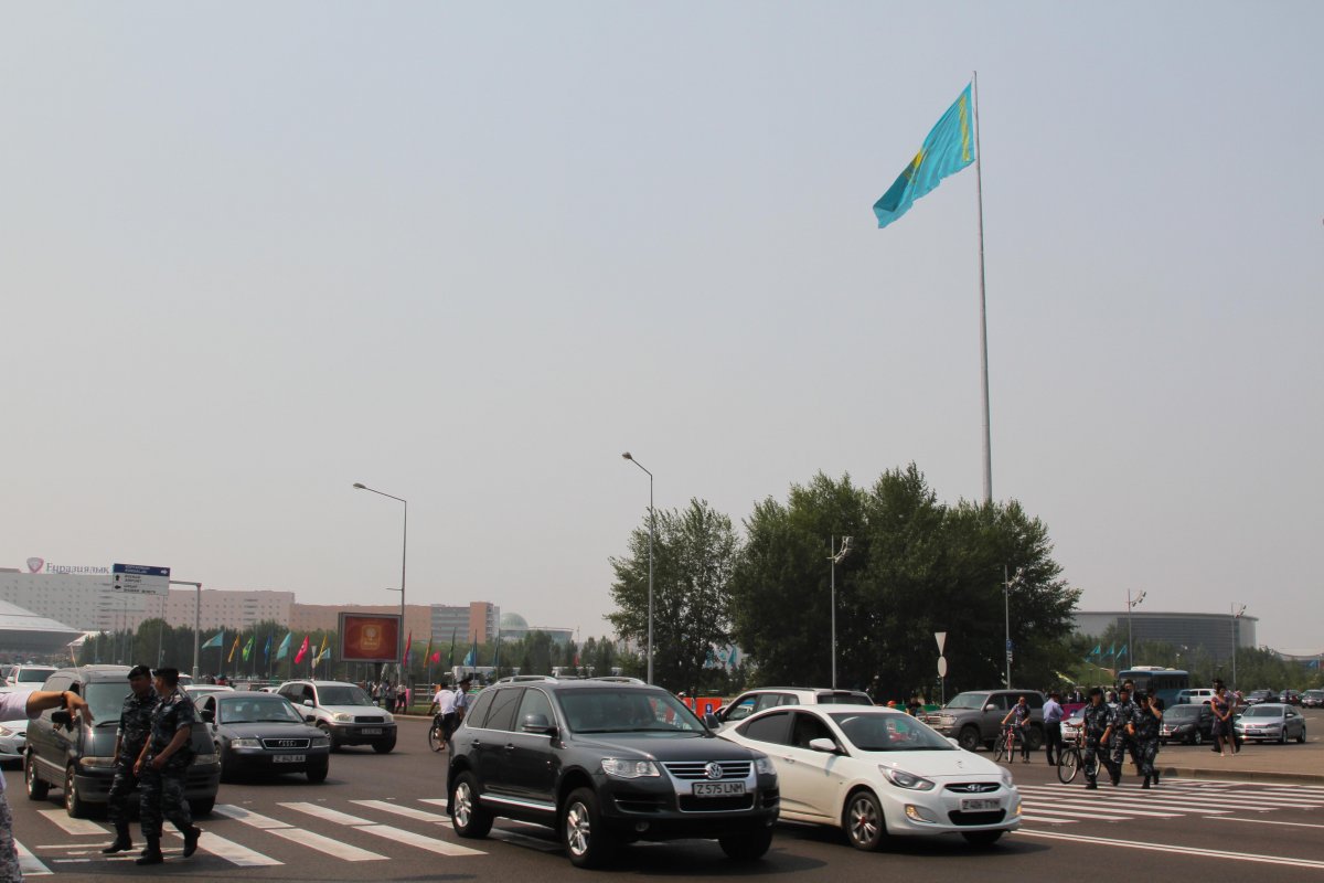 Главный Государственный флаг Казахстана расположен в самом центре Астаны и имеет размер 15 на 30 метров. Он возвышается над городом на высоте 111 метров, что позволяет видеть его из любой точки города. Согласно информации, размещенной на сайте акимата района "Есиль" Астаны, общая площадь полотнища составляет 450 квадратных метров. Представители акимата подчеркивают, что для Астаны фактор климата выступает основным и определяющим в содержании и обслуживании главного Государственного флага. "Именно непогода (ветер, дождь, снег) является причиной различных фактов физического повреждения и замены флага", - говорится на сайте.