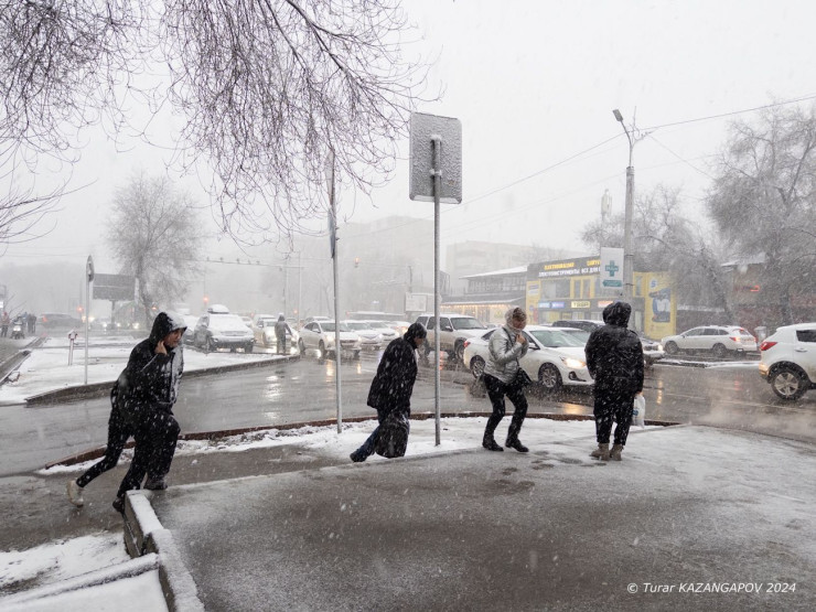 Несмотря на середину марта, в Алматы выпал самый обильный за последние несколько недель снегопад. При этом температура воздуха все еще остается относительно невысокой - около 1 градуса. Мокрый снег существенно осложнил жизнь горожанам под конец рабочего дня.