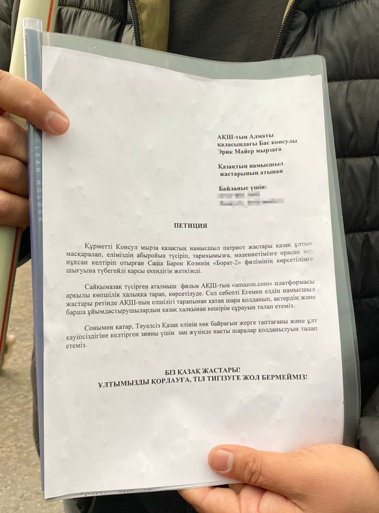 Акция протеста, которую устроили молодые жители города, прошла днем 23 октября. Собравшие у консульства алматинцы заявили, что считают новый фильм Саши Барона Коэна расистским и грубым. Поэтому они организовали сбор подписей для запрета показа картины.