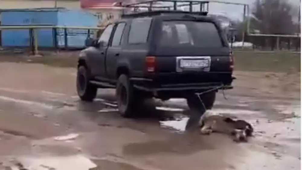 Пользователей Казнета шокировало видео, где неизвестный водитель управляет машиной, за которой волочится привязанный труп собаки, передает корреспондент Tengrinews.kz.