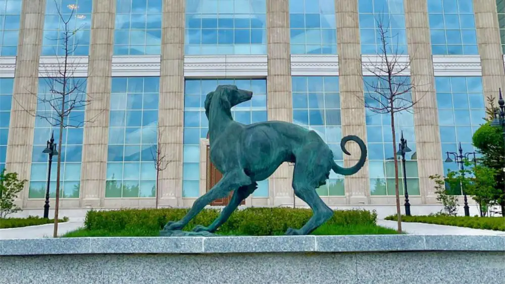 Возле резиденции Президента "Акорда" в Астане появилась необычная скульптура. Она представляет собой фигуру собаки породы казахский тазы, передает корреспондент Tengrinews.kz.