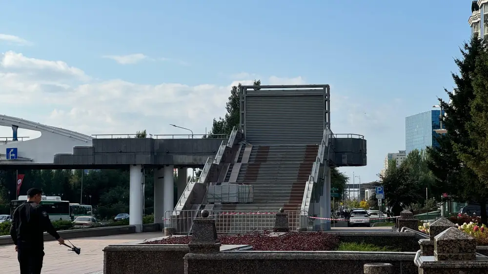 В Астане на мосту, ведущем к правительству Казахстана, появилось необычное сооружение, передает Tengrinews.kz.