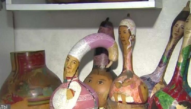 Сейчас у нее собралась большая коллекция "тыквенных произведений". Большинство ее работ показывают казахскую культуру, фольклор и быт. Из своей маленькой квартиры художница сделала целую мастерскую с экспозиционным залом. Ее оригинальные работы везде – на стульях, диванах, стенах. А теперь у мастера новое увлечение: она создает детские мультфильмы, и уже есть успехи. Помогает ей в этом дочь Маржан.