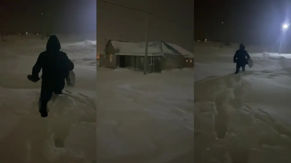 81-летний житель села упорно расчищает дорогу возле своего дома. Он рассказывает, что его супруга все выходные чувствовала себя плохо, но из-за заваленных снегом дорог они так и не смогли добраться до больницы. Теперь пенсионер остался один на один с сугробами, и неизвестно, сколько времени ему еще придется работать лопатой.