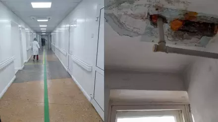 Женщина для наглядности сфотографировала состояние одного из отделений больницы. Хотя передвигается она на коляске, она проехалась по отделению и сделала несколько снимков. Разваливающаяся мебель, протекающие потолки, не приспособленные для нужд пациентов туалетные комнаты. В уборной, например, унитаз не подключен к системе водоснабжения.