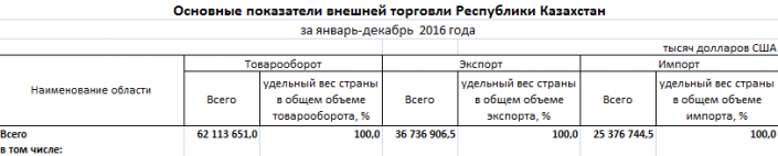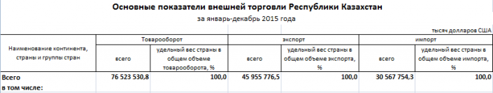 По данным Комитета по статистике МНЭ РК в 2015, 2016 и 2017 годах общий экспорт Казахстана превышал импорт.