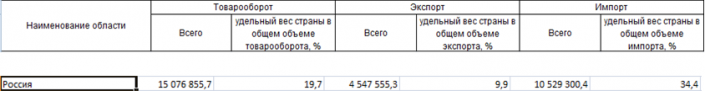Товарооборот с Россией в 2015 году