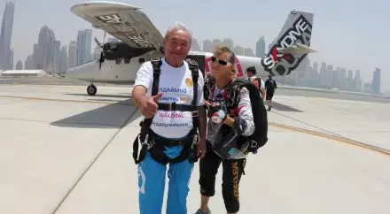 В свои 74 года Нарикбаев совершил прыжок с парашютом в поддержку национальной идеи "Мәңгілік ел".