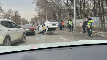 "Водитель автомобиля марки Geely, следуя по проспекту Сейфуллина в северном направлении, севернее улицы Сатпаева при перестроении из ряда в ряд допустил столкновение с автомобилем марки Toyota. В результате Geely опрокинулся на крышу. Пострадавших нет", - сообщили в полиции.