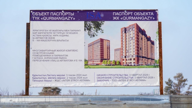 "Застройщик ТОО Inter Stroy Astana привлекал деньги дольщиков для строительства МЖК Qurmangazy", - говорится в сообщении.