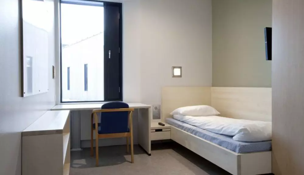 Каждая камера рассчитана на одного человека. "Конечно, это новая тюрьма, она более современная. И здесь, видите, есть кровать, которая изначально была произведена в пенитенциарной системе. С правой стороны телевизор видно, также у них есть радио. Есть туалет и душ. Понимаете, мы здесь деньги тоже экономим, у нас такие туалеты, которые делятся между несколькими комнатами, мы не обеспечиваем один туалет в каждой камере", - говорит Андреас Скуллберг.