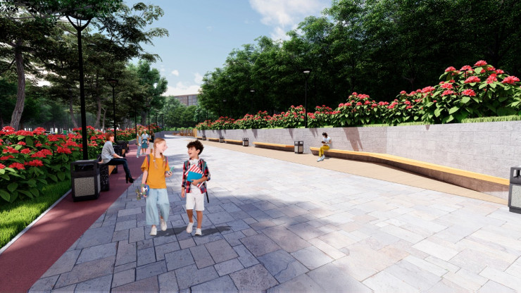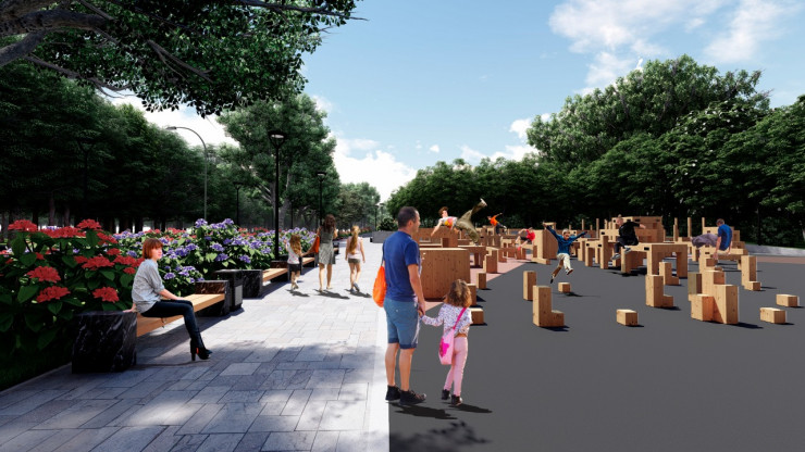 В сквере планируется построить паркур-площадки для взрослых и детей.