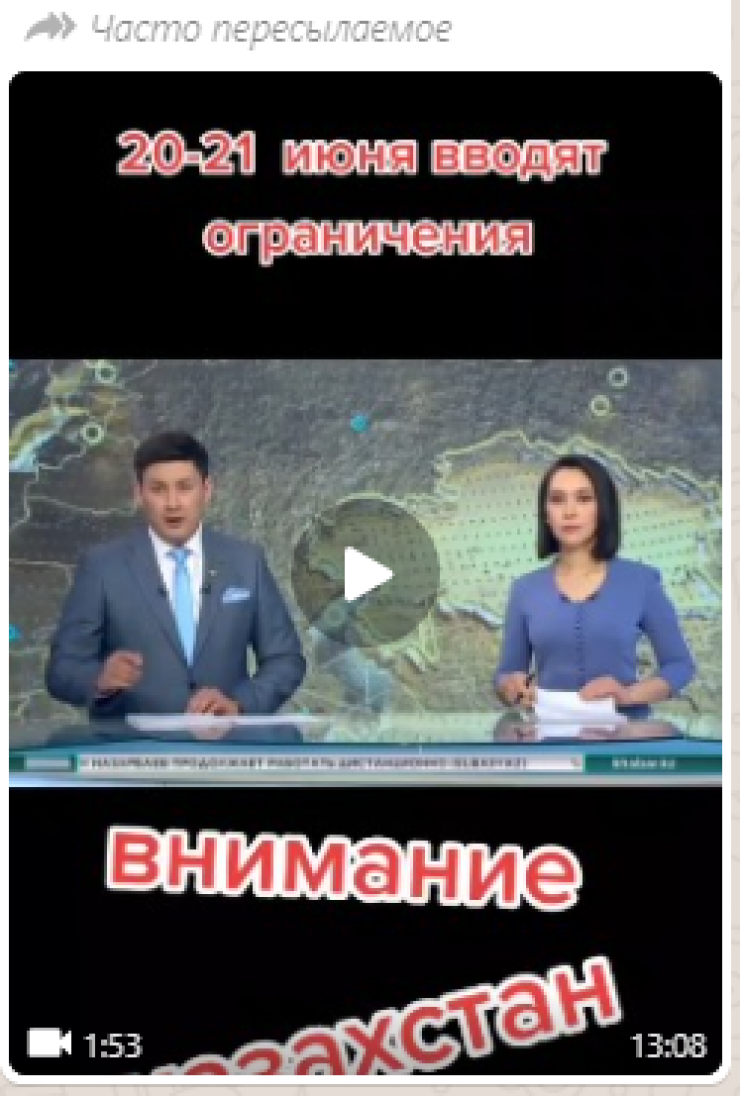 Новость об ужесточении карантина распространяют казахстанцы в WhatsApp Кадр из видео / stopfake.kz