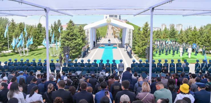 Глава государства также рассказал о священном долге каждого мужчины и вручил офицерские погоны выпускникам военных вузов.