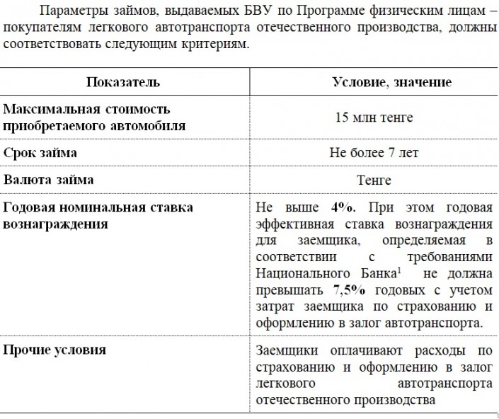 "Целевое назначение использования денег, полученных от размещения облигаций, - финансирование банков второго уровня через механизм займа для кредитования физических лиц - покупателей легкового автотранспорта отечественного производства, на условиях, определенных Программой. Периодичность выплаты купонного вознаграждения - не реже двух раз в год. Срок погашения облигаций - в конце срока обращения, с правом частичного или полного досрочного погашения по инициативе эмитента", - говорится в документе.