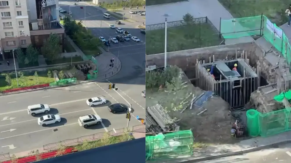 Рабочих в касках и жилетах заметили на пересечении улиц Туркестан и Бухар Жырау. Видео в редакцию Tengrinews.kz прислал читатель, который предположил, что, возможно, строится новая ветка LRT.