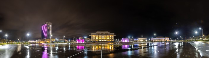 У здания нового театра, где было проведено благоустройство территории, запущено два новых музыкальных светодинамических фонтана.