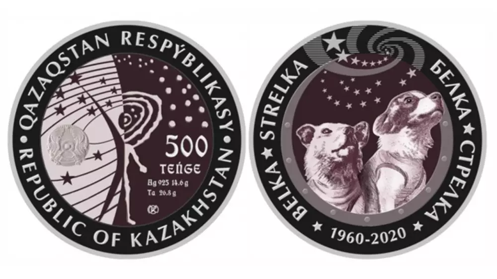 Эти монеты посвящены 60-летию полета в космос советских собак-космонавтов Белки и Стрелки с космодрома Байконур на корабле "Восток", сообщает Нацбанк.