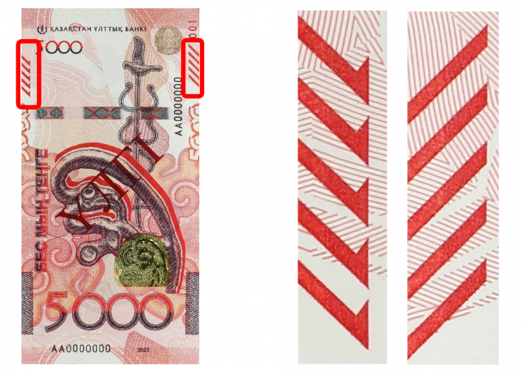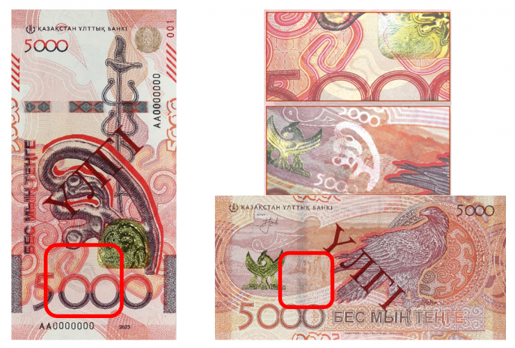 В связи с появлением новой купюры Нацбанк напомнил о простых правилах, которые помогут самостоятельно отличить настоящие банкноты от поддельных, и представил защитные элементы банкноты 5 000 тенге нового дизайна образца 2023 года.
