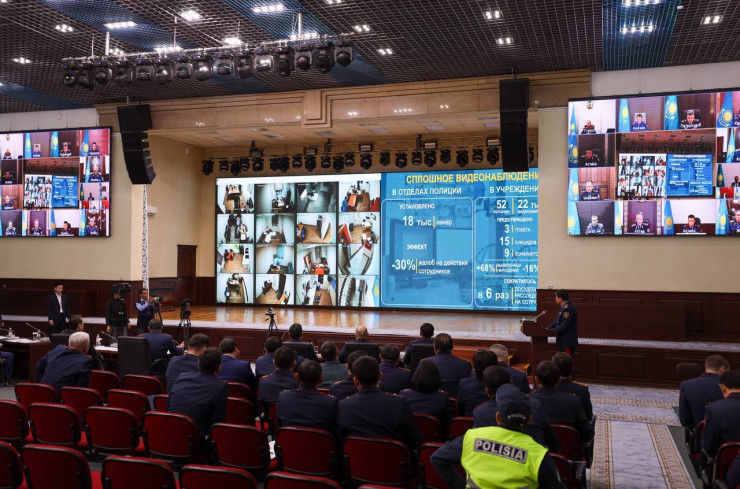 Сплошным видеонаблюдением охвачены и служебные помещения ОВД. Всего установлено 18 тысяч камер. Они позволяют контролировать поведение как самих сотрудников, так и других участников рабочего процесса. Аналогичная работа ведется в учреждениях УИС. Так, в 52 колониях установлено 22 тысячи видеокамер. Изображения выведены в ситуационный центр КУИС и органы прокуратуры.