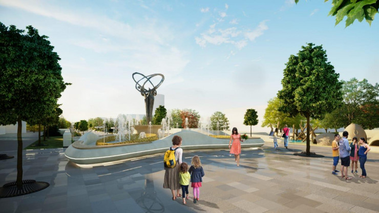 Еще один сухой фонтан появится возле Казахского музыкально-драматического театра имени Куанышбаева. На этой территории также установят малые архитектурные формы, инсталляции, велодорожку, теневые навесы. Предусмотрено размещение торговых павильонов, игровых зон и детских площадок.