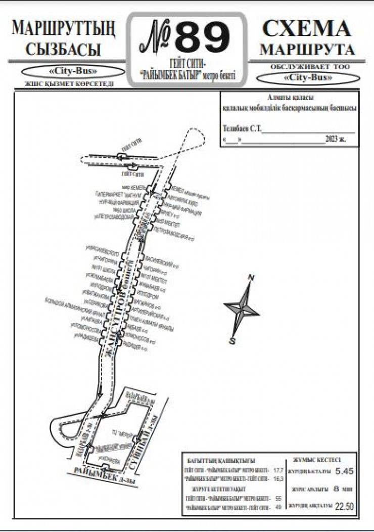 С 5 ноября на улицах города появится маршрут № 89. Он будет курсировать от станции "Райымбек батыр" до ЖК Gate City в Илийском районе области.