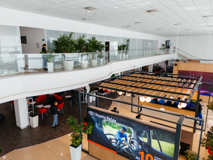 Обновленные дилерские центры продуманы до мелочей. Здесь используется гармоничное сочетание экологически чистых материалов и интерактивных технологий, таких как сенсорные экраны, предоставляющие актуальную информацию о продуктах и услугах Toyota. Все это создано для удобства и удовлетворения потребностей каждого клиента.
