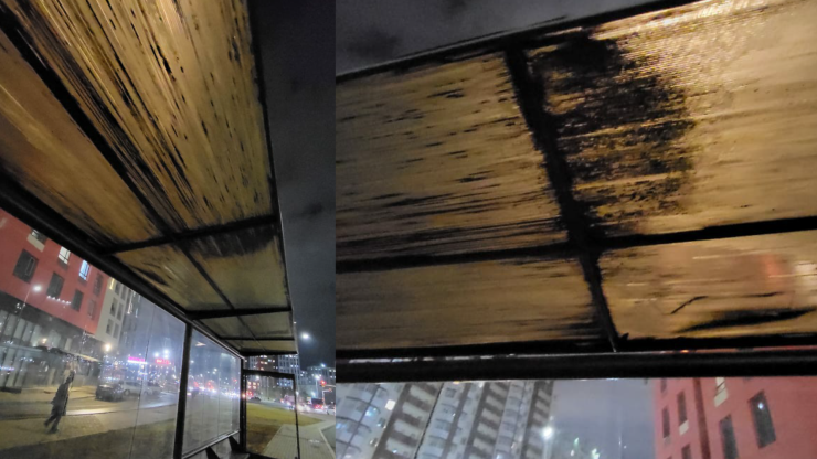 "Наш дом был сдан в конце 2023 года. Остановка находится около нашего ЖК, павильона изначально не было, был только карман для заезда автобусов. Во время снегопада, дождя или сильного ветра люди, которые ждут автобус, заходят к нам в подъезд. Нам не жалко, но это постоянно грязь, плевки, мусор бросают. Поэтому мы много раз писали обращения, чтобы установили крытый остановочный павильон. В середине октября наконец наши просьбы были услышаны. Прошло две недели, и павильон завалился из-за ветра. Ну разве так можно? Сама остановка как будто б/у. Она вся ржавая, а на крыше у нее изначально закреплен грязный поликарбонат, как будто с мусорки какой-то его достали. По бокам не хватало остекления, поэтому даже от ветра в ней не спрятаться", - жалуются жители ЖК.