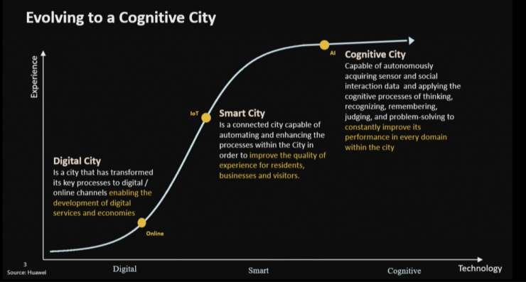 График эволюции понятия "умный город": от умного к когнитивному. Слайд из презентации Huawei.