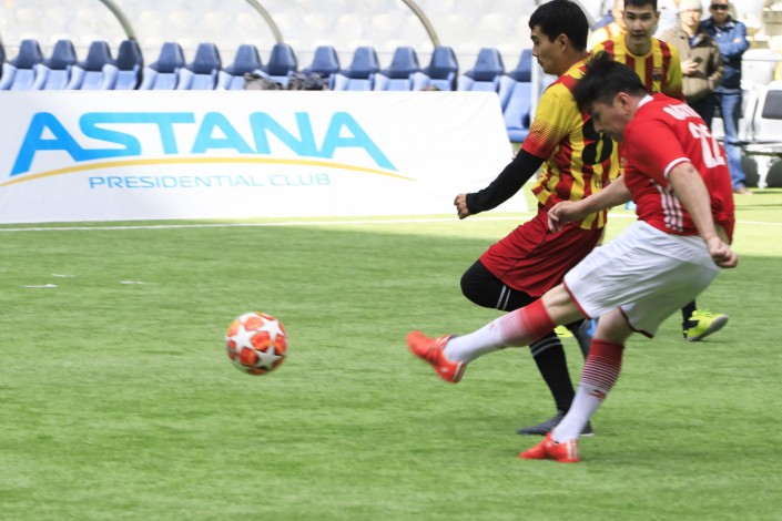 В целях пропаганды массового спорта и здорового образа жизни на столичном стадионе "Астана Арена" прошел турнир по мини-футболу среди военнослужащих центрального аппарата Министерства обороны. В течение двух дней на футбольном поле не стихали спортивный азарт и нешуточные страсти. Команды соревновались в ловкости, мастерстве и профессионализме владения кожаным мячом, а спортсмены проявили командный дух и стремление к победе, свидетельством чему явились красивые голы и нескрываемая радость от каждого забитого мяча.