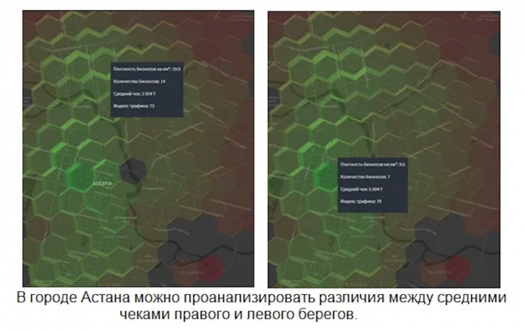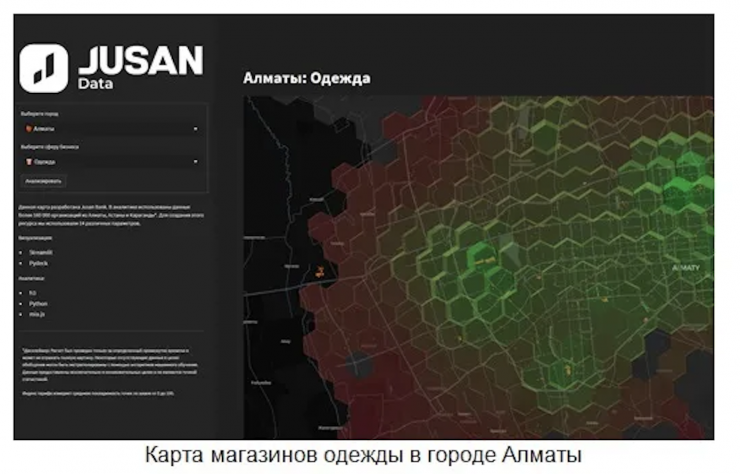 - Она бесплатная и доступна по адресу https://jusan.ai/sme. Пока в трех крупных городах страны и в разрезе 10 видов бизнеса можно увидеть плотность точек продаж, количество конкурентов, клиентов и средний чек. Мы разделили города на шестиугольные соты, где каждую соту условно можно преодолеть за 15 минут пешком. Это IT-решение полезно предпринимателям для принятия решения по открытию того или иного бизнеса, в расчетах и прогнозах, и для понимания экономической активности конкретных локаций. Мы ежедневно совершенствуем платформу и в ближайшее время добавим больше городов, бизнесов и показателей. Я верю, что она станет хорошим информационно-аналитическим спутником для казахстанских предпринимателей. Ведь кто владеет информацией – тот владеет миром.
