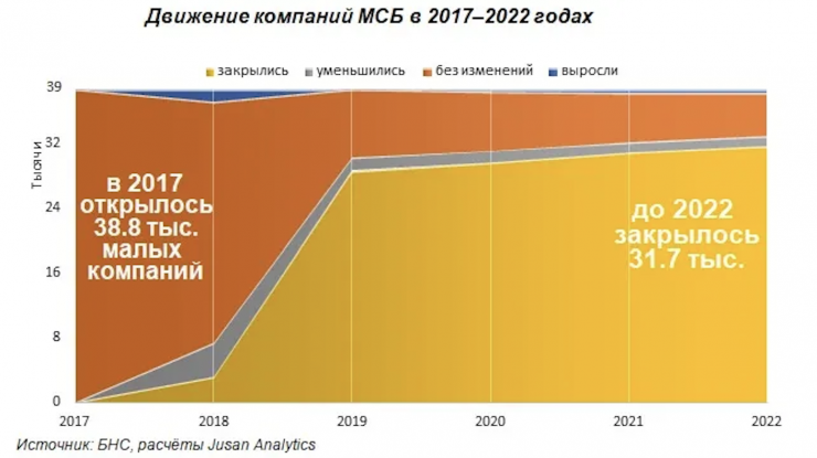 Для оценки уровня выживаемости малого бизнеса в Казахстане мы проанализировали жизненный путь 39 тысяч малых ТОО и ИП, созданных в 2017 году. Так, 8,2 процента компаний закрылись в первый год работы, 80 процентов - на второй год, а уровень 5-летней выживаемости показали 18,4 процента. Для сравнения: в США этот уровень гораздо выше – 51,9 процента.
