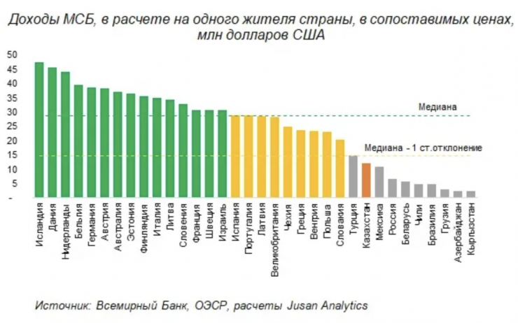 Несмотря на высокие номинальные показатели роста, доходы, генерируемые МСБ в расчете на одного жителя республики, значительно ниже, чем в странах ОЭСР и странах со схожими экономиками, даже при расчете в сопоставимых ценах.