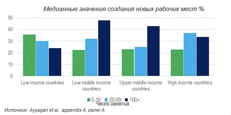 - Да. Но и это не является "серебряной пулей" решения проблемы. Давайте посмотрим на мир. В развитых странах рабочие места в основном генерирует МСБ. Более половины новых рабочих мест в мире создается компаниями с численностью менее 100 человек. Это заметно в странах, демонстрирующих высокие показатели занятости, включая передовые страны ОЭСР.