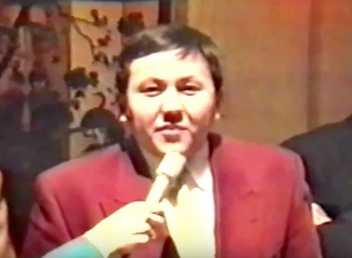 Присутствующие посмотрели архивное видео, на котором Нурлан Смагулов в малиновом пиджаке рассказывает о поездке в США с Президентом.