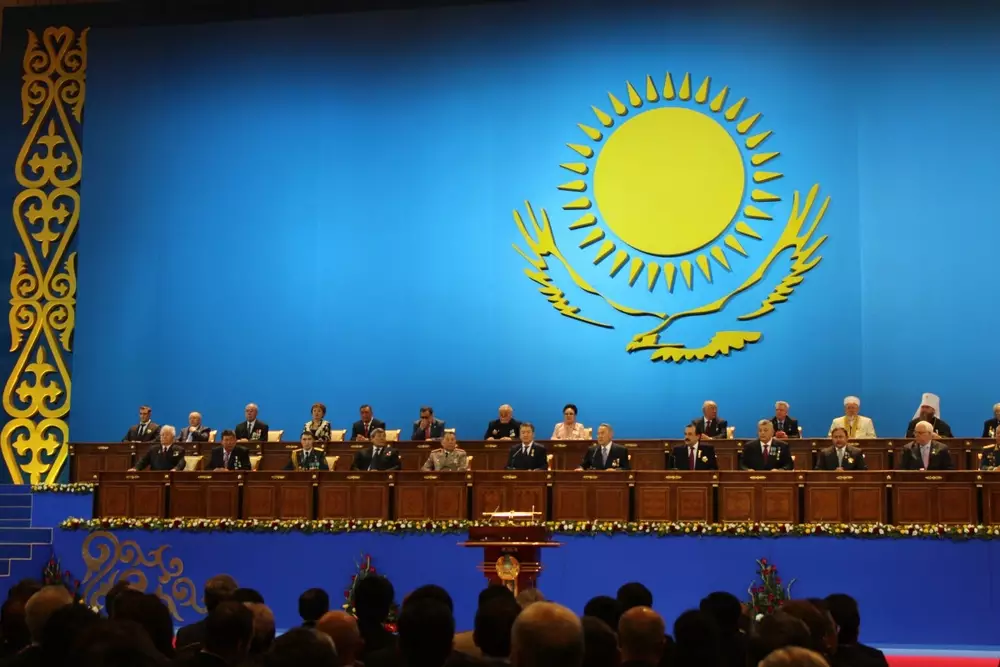 В президиуме во главе с Нурсултаном Назарбаевым сидят известные политические и общественные деятели, среди них премьер-министр Карим Масимов, первый глава кабинета министров республики Сергей Терещенко, спикер сената Кайрат Мами, сенатор Мухтар Алтынбаев, Верховный муфтий и православный митрополит, космонавты Токтар Аубакиров и Талгат Мусабаев, актер Асанали Ашимов, певица Бибигуль Тулегенова, олимпийский чемпион Илья Ильин и другие казахстанцы, внесшие вклад в развитие независимого государства.