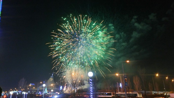 В праздничном шоу участвовало более двух тысяч школьников и творческих коллективов Астаны. Открытие городка и зажжение новогодней елки стало стартом праздничным мероприятиям по всей стране. Вслед за главной елкой зажгутся огни на еще 40 елках в разных концах столицы, а также во всех городах Казахстана.