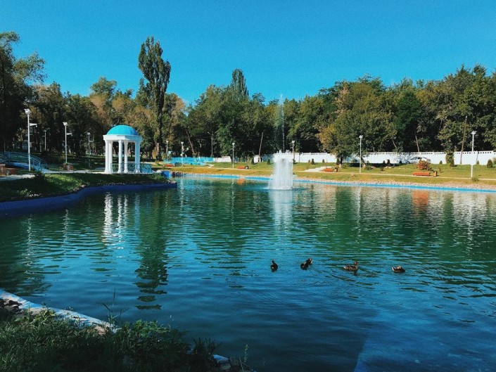 "Раньше не знал, что на КазНУ есть свой пруд с блэкджеком и уточками. Открыл его для себя совершенно случайно - решил срезать дорогу и попасть на работу в "Есентае" через городок университета. Срезал, офигел от удивления и даже посидел там 15 минут".
