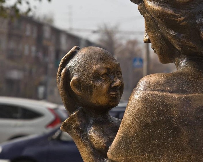 "Вы могли подумать, что на фото смесь Волан де Морта, эльфа Добби и Владимира Путина. Безусловно, у вас даже будут все основания так думать. Но ответ все равно неправильный. Правильный ответ - это скульптура "Мать и дитя". Найти ее можно у роддома номер 3 в Ауэзовском районе", - шутливо подмечает Рустем.
