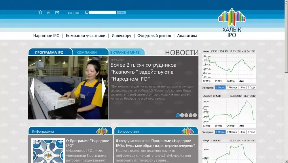 О "Народном IPO" теперь можно узнать на специальном сайте, созданном АО "Фонд национального благосостояния "Самрук-Казына", передает Tengrinews.kz.