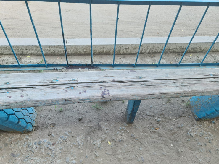 О жуткой расправе во дворе павлодарской многоэтажки сейчас напоминают потеки крови на лавочке и засыпанное землей место, где был убит мужчина.