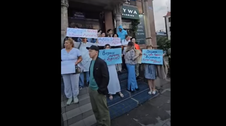 Возмущенные алматинцы пришли к офису компании с плакатами.