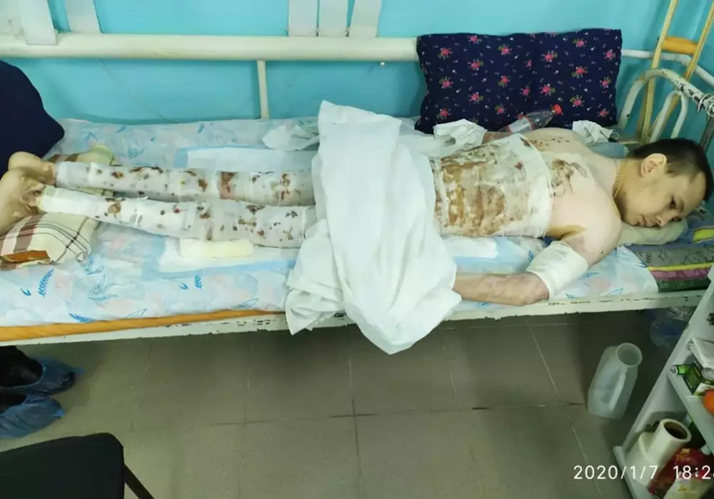 Корреспондентов издания не сразу пропустили в палату Артема. Беседа с пациентом проходила под пристальным вниманием врачей. Больного накрыли белым одеялом, таким образом спрятав страшную картину ожогов.