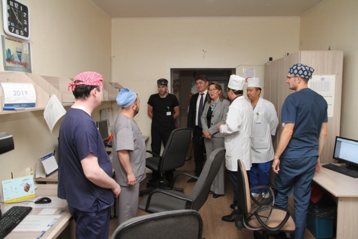 Вторым объектом посещения стал областной центр ортопедии и травматологии имени Х.Ж. Макажанова. Здесь за неделю апробации медстрахования проведено 60 плановых операций. Если раньше эти операции проводились платно, то теперь эти операции будет оплачивать Фонд медицинского страхования. Всего на регион для тестового внедрения выделено 2,3 миллиарда тенге.