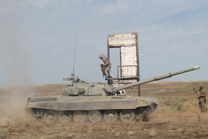 На базе учебного центра Военного института Сухопутных войск Алматы проходит общевойсковая подготовка первокурсников. Одним из испытаний стала "обкатка танком".