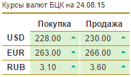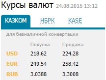 Тем временем, Казком установил на своем сайте курс доллара в 218,62 тенге на покупку и 224,28 на продажу. На сайте банка ЦентрКредит установлена цена приобретения валюты в 228 и продажи в 230. Евразийский банк установил цены в 228 на покупку и 229,9 на продажу.