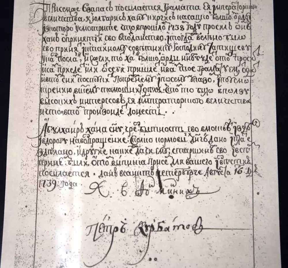 Как отмечают в госархиве, здесь представлены уникальные архивные документы о деятельности выдающихся казахских ханов, выявленные в архивах стран ближнего зарубежья. В частности, переписка Абулхаир-хана с российской императрицей Анной Иоановной и Абылай-хана с Екатериной Великой.