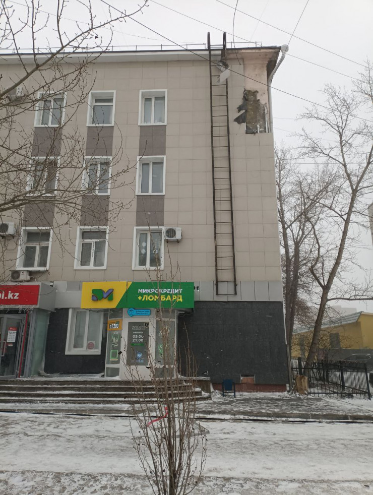 В Костанае от ветра слетело несколько больших облицовочных плиток с фасада четырехэтажного здания. Также в городе сорвало вывески магазинов.