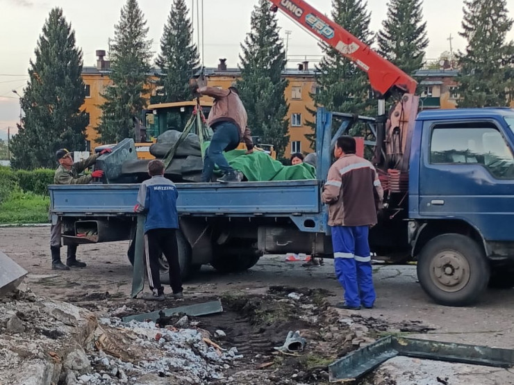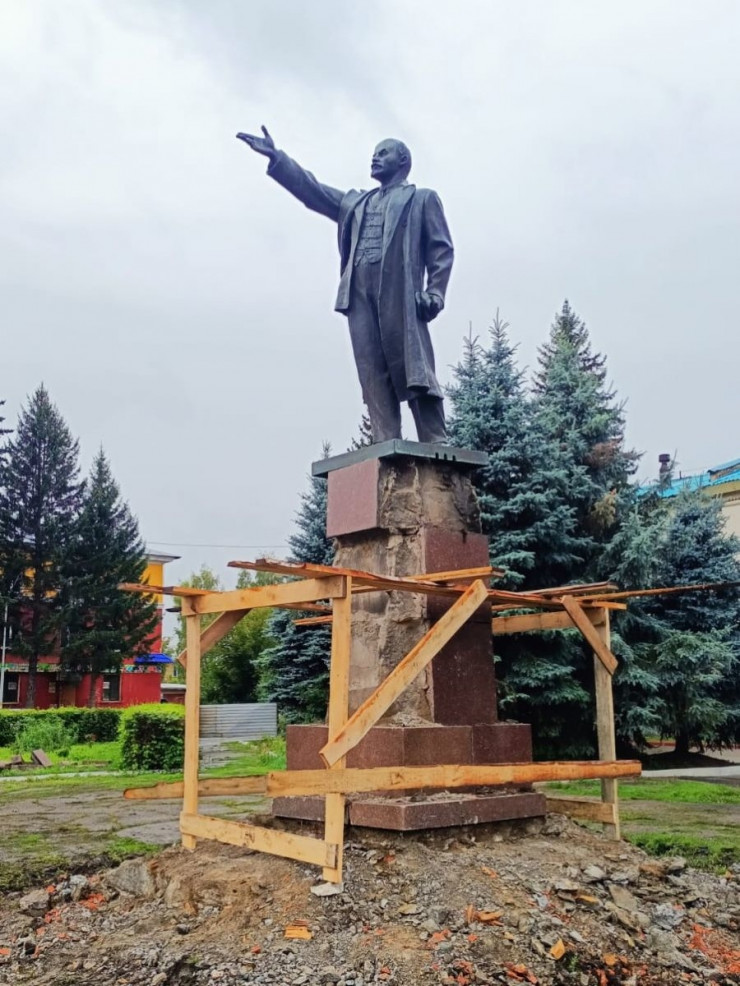 15 августа в Алтае приступили к благоустройству центральной площади. В перечень работ входила также реконструкция гранитных плит постамента памятника Ленину.